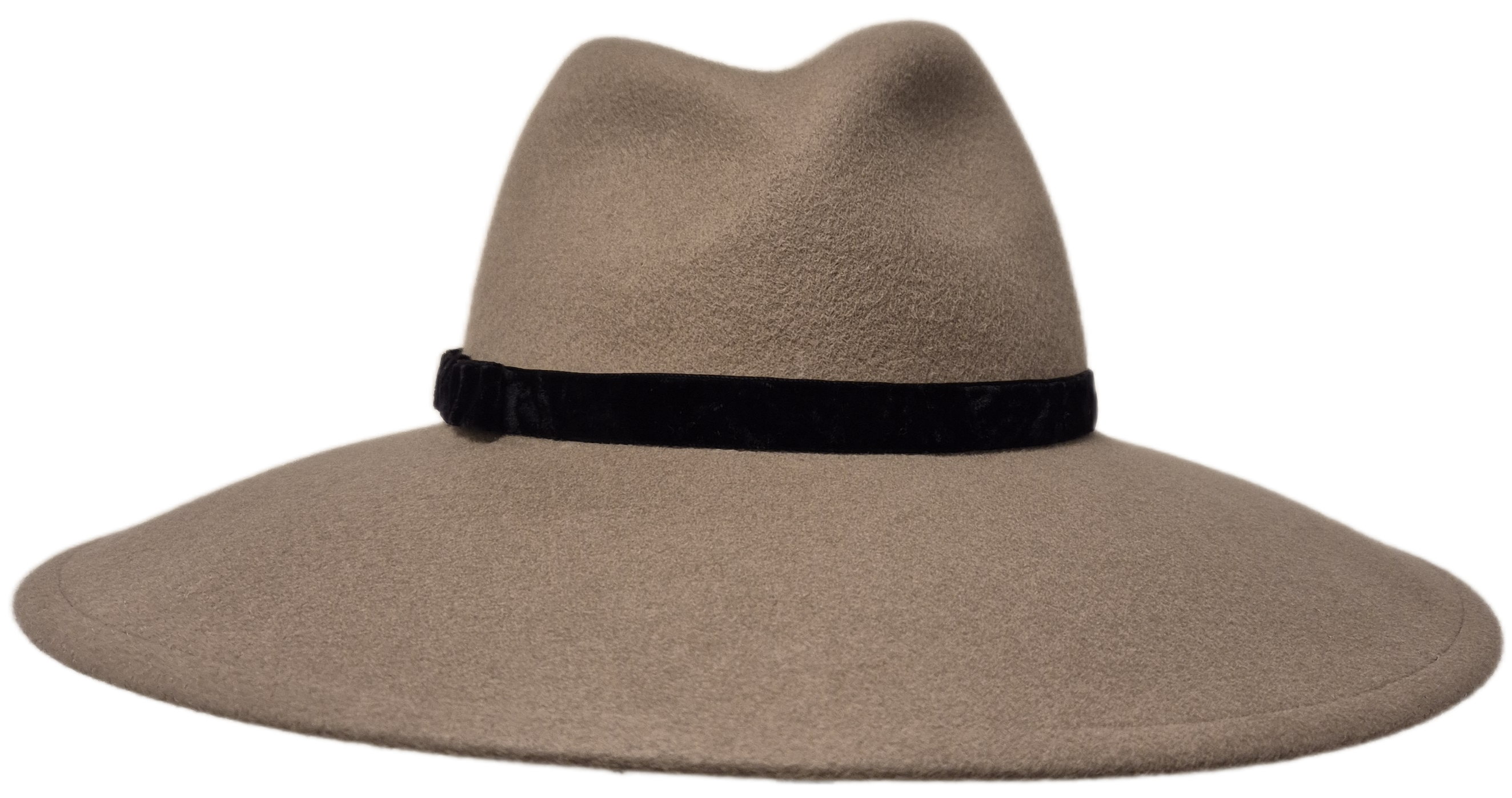 Royale soepele dameshoed van het merk Mayser. De karakteristieke vorm, met een inkeping in de bol en de grote rand, maken van deze prachtige hoed een echte eyecatcher. De hoed is afgewerkt met een smalle zwart fluwelen band met platte strik op de rechterzijkant. Deze soepele hoed heeft een comfortabele stretchband aan de binnenzijde voor nog meer comfort. Doorsnee ca. 39 cm., hoogte middenvoor ca. 10 cm., rand ca. 11,5 cm. Hoofdmaat M/57. In meerdere kleuren leverbaar.