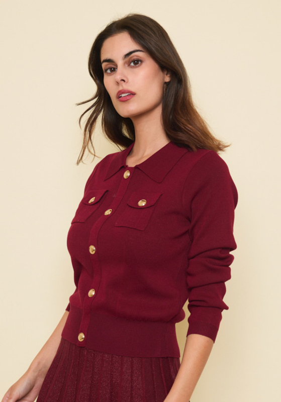 Clara fijngebreide cardigan art. 9186 - burgundy