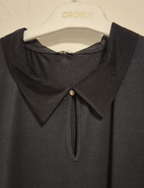 T-shirt van het merk Oroblu met tule kraag en lange mouw, uitgevoerd in micromodal/katoen voor een perfect draagcomfort. Afgewerkt met klein glinsterknoopje om het shirt te sluiten. Wasbaar op 30 graden. In diverse maten en kleuren.