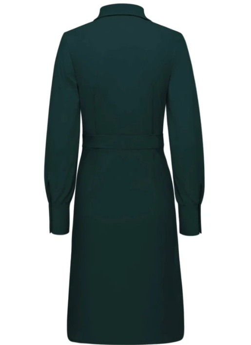Een prachtige getailleerde jurk van Triple Nine met lange mouwen. Deze korte jurk heeft een kraag en sluiting met decoratieve goudkleurige knopen. Dit item van top kwaliteit travelstof valt op de knie, gemiddelde lengte ca. 102 cm. Leverbaar in diverse kleuren en maten (valt goed op maat, S=36). Kortom, een prachtige basisjurk!!