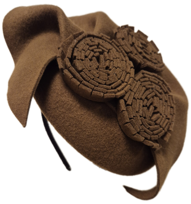 Mooie dophoed van het merk Complit. De hoed is royaal gegarneerd met vilt en heeft drie bloemen op de bovenzijde. Deze dophoed heeft een prettige pasvorm en blijft goed zitten door de beugel. Zeer geschikt voor de kerk of een (feestelijke) gelegenheid. Leverbaar in diverse kleuren. Doorsnee ca. 24 cm., hoogte ca. 4 cm.