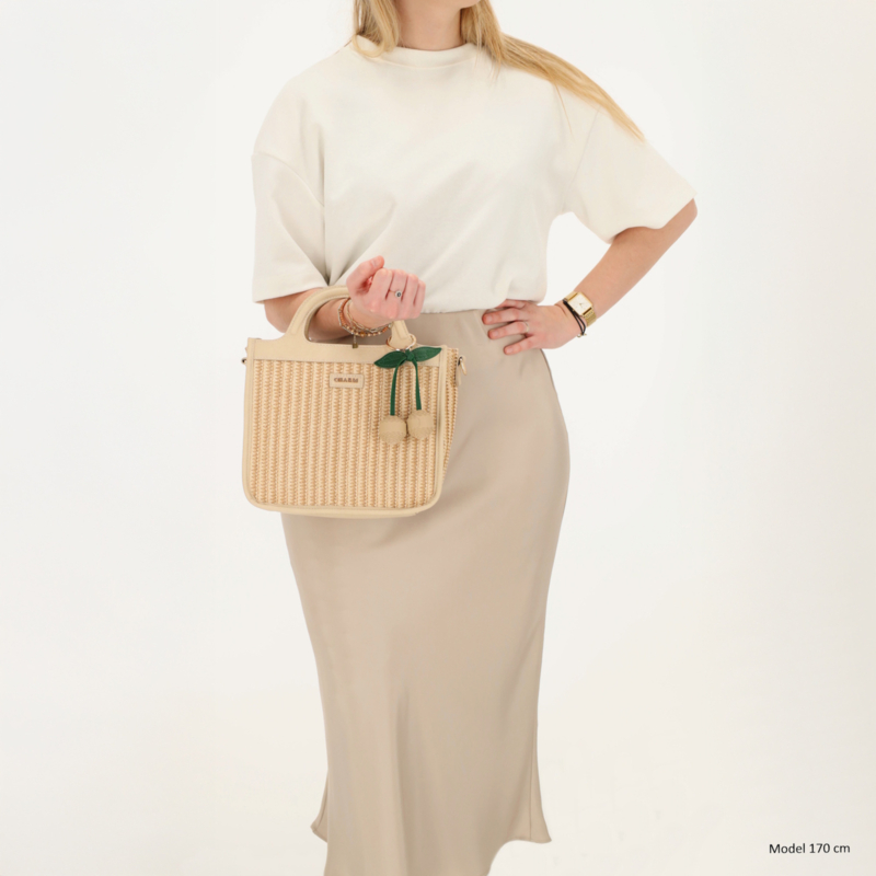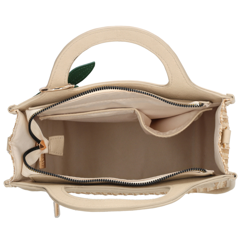 Binnenin beschikt de tas over twee insteekvakken en een ritsvak voor kleinere items. Aan de achterkant bevindt zich een extra ritsvak voor spullen die je snel bij de hand wilt hebben. De leuke bag charm geeft de handtas een speels en verzorgd detail.