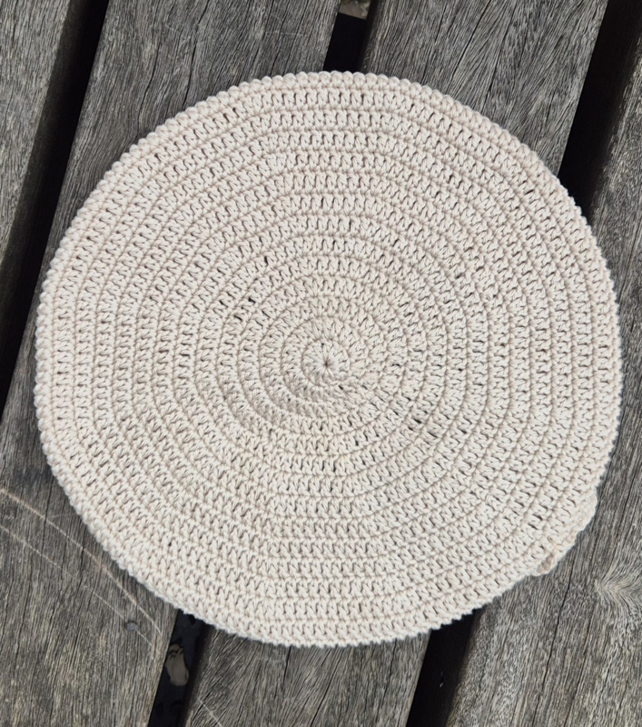 Leuke gehaakte kinderbaret met rechtsvoor een bloemgarnering. Geschikt voor meisjes van 4-8 jaar. Kriebelt niet. Doorsnee ca. 24 cm.