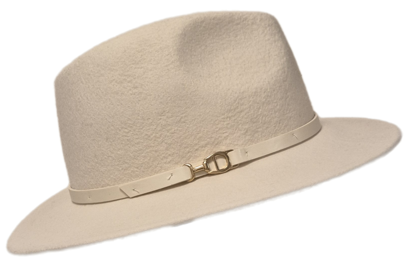 Vlotte basishoed van wolvilt van het merk Andrea. Deze 'fedora' heeft een ring in bol en twee deuken aan de voorzijde. De hoed heeft een gesneden rand en is luxe gegarneerd met smalle leren riempjes en…€ 79,95 - Andrea dameshoed basis art. 15736 - wolwit