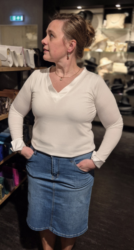 Een basistop van Triple Nine. Deze top heeft een mooie V-hals met een kanten rand. Dit item van topkwaliteit travelstof is een handige basic onder al je jasjes. Leverbaar in diverse maten (valt goed op maat,…€ 44,95