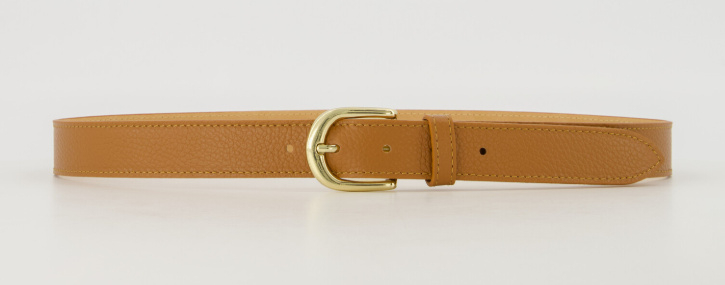 Damesriem classic grain art. Suus - cognac/goudkleurProductomschrijving