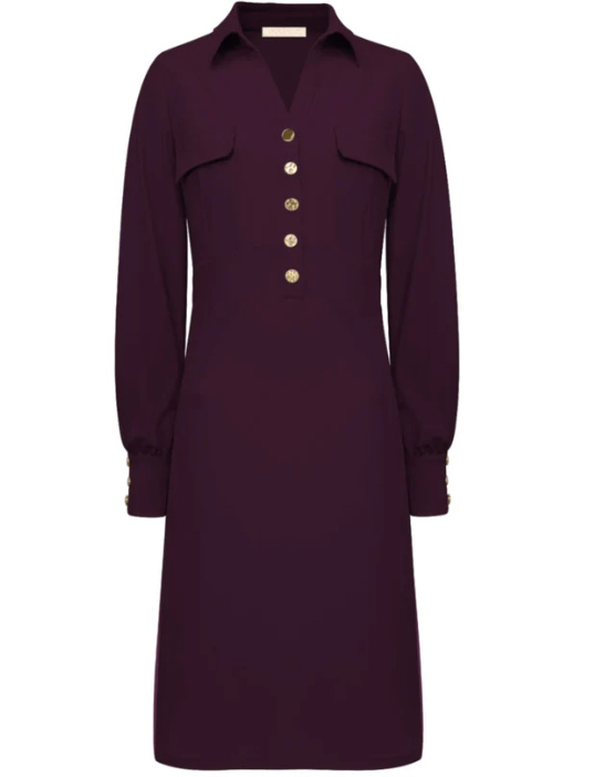 Een prachtige getailleerde jurk van Triple Nine met lange mouwen. Deze korte jurk heeft een kraag en sluiting met…€ 79,95- TRIPLE NINE jurk met rits art. JK51813 - aubergine/deep purple