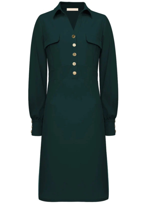 Een prachtige getailleerde jurk van Triple Nine met lange mouwen. Deze korte jurk heeft een kraag en sluiting met decoratieve goudkleurige knopen. Dit item van top kwaliteit travelstof valt op de knie,…€ 79,95 - TRIPLE NINE korte jurk met kanten mouwen art. JK-51812 - zwart